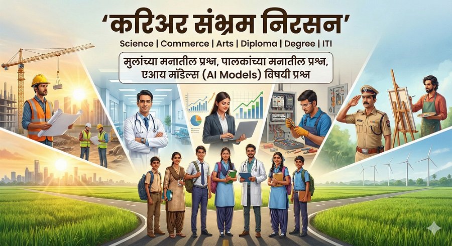 рд╡рд┐рджреНрдпрд╛рд░реНрдереНрдпрд╛рдВрдЪрд╛ рдХрд░рд┐рдЕрд░ рдирд┐рд╡рдбреАрддреАрд▓ рд╕рдВрднреНрд░рдо рджреВрд░ рдХрд░рдгреНрдпрд╛рд╕рд╛рдареА рдХрд░рд┐рдЕрд░ рд╕рдВрднреНрд░рдо рдирд┐рд░рд╕рди рдорд╛рд░реНрдЧрджрд░реНрд╢рди. 10рд╡реА рд╡ 12рд╡реА рдирдВрддрд░ Science, Commerce, Arts, Diploma, Degree рдЖрдгрд┐ ITI рдордзреАрд▓ рд╕рд░реНрд╡реЛрддреНрддрдо рдХрд░рд┐рдЕрд░ рдкрд░реНрдпрд╛рдпрд╛рдВрдЪреА рд╕рдВрдкреВрд░реНрдг рдорд╛рд╣рд┐рддреА, рдЕрднреНрдпрд╛рд╕рдХреНрд░рдо, рдиреЛрдХрд░реА рд╕рдВрдзреА рдЖрдгрд┐ рднрд╡рд┐рд╖реНрдпрд╛рдЪреА рджрд┐рд╢рд╛ рдПрдХрд╛рдЪ рдард┐рдХрд╛рдгреА.