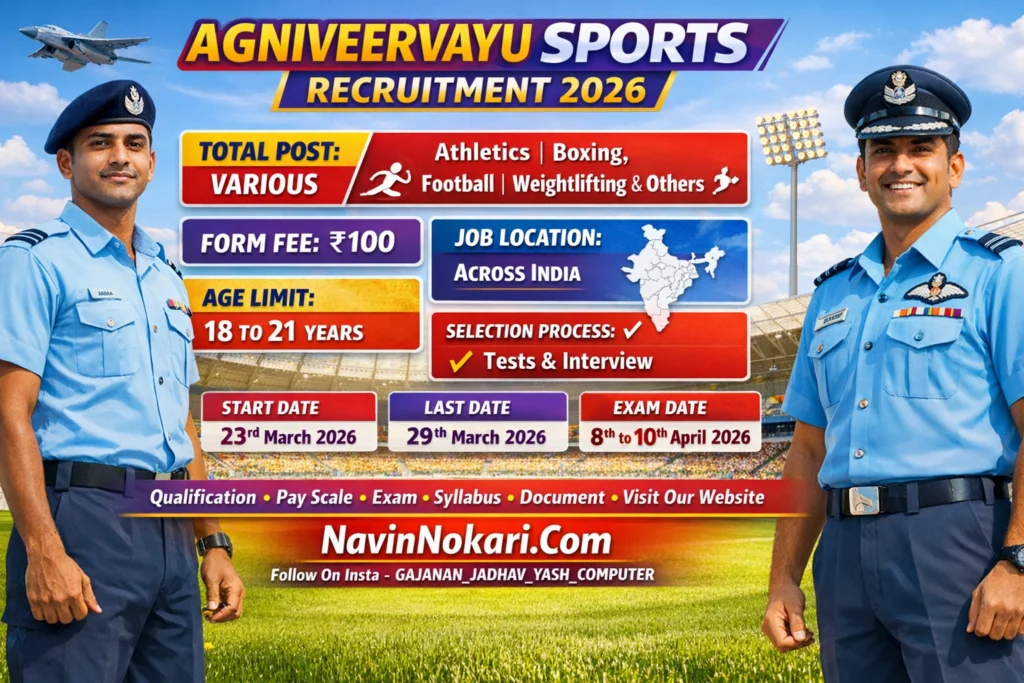 Agniveervayu Sports Bharti 2026 (– Posts) | अग्निवीरवायू स्पोर्ट्स भरती 2026