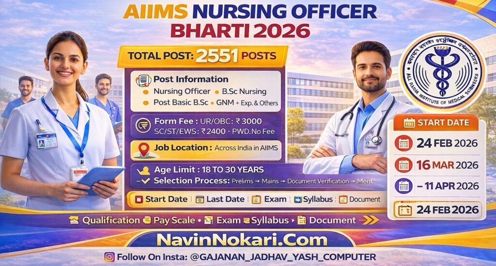 AIIMS Nursing Officer Bharti 2026 (2551 Posts) | AIIMS नर्सिंग ऑफिसर भरती 2026