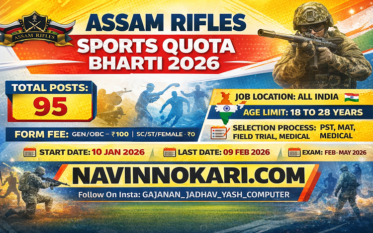 Assam Rifles Sports Quota Bharti 2026 (95 Posts) | आसाम रायफल्स क्रीडा कोटा भरती 2026