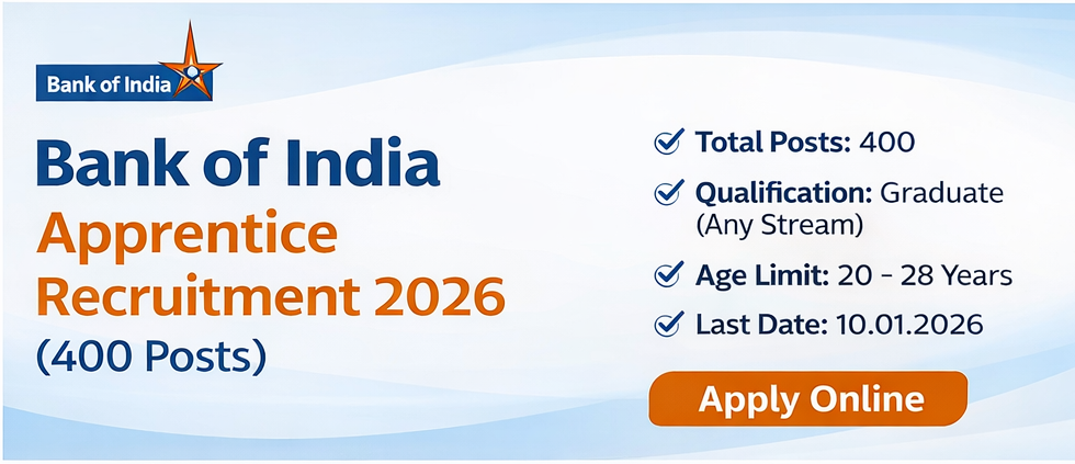 Bank of India Apprentice Bharti 2026 (400 Posts) | बँक ऑफ इंडिया अप्रेंटिस भरती 2026