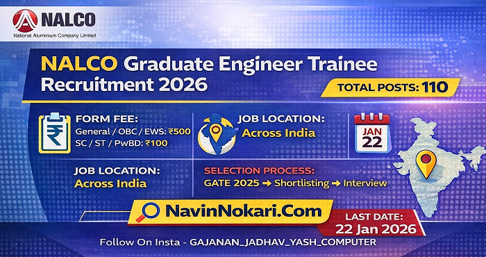 NALCO Engineer Trainee Bharti 2026 (110 Posts) | नाल्को ग्रॅज्युएट इंजिनिअर ट्रेनी भरती 2026