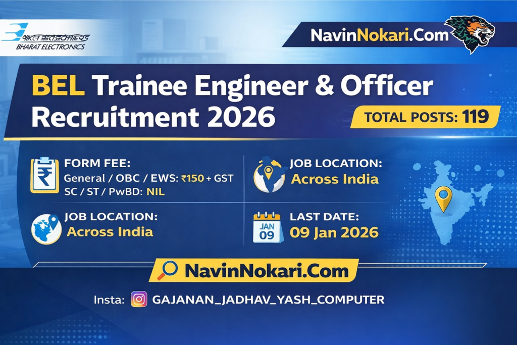 BEL Trainee Engineer & Officer Bharti 2026 (119 Posts) | भारत इलेक्ट्रॉनिक्स लिमिटेड ट्रेनी इंजिनिअर व ऑफिसर भरती 2026
