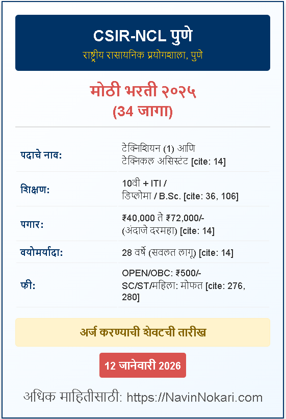 IOCL Non-Executive Recruitment 2025 (394 Posts) अंतर्गत इंडियन ऑइल कॉर्पोरेशन लिमिटेड (Refineries Division) मार्फत विविध नॉन-एक्झिक्युटिव्ह पदांसाठी पात्र उमेदवारांकडून ऑनलाइन अर्ज मागविण्यात येत आहेत. ही आयओसीएल नॉन-एक्झिक्युटिव्ह भरती 2025 (394 पदे) भारतातील विविध रिफायनरी युनिटसाठी राबविण्यात येत आहे. पदनिहाय पदसंख्या क्र. पदाचे नाव संख्या 1 Junior Engineering Assistant-IV / Junior Technical Assistant-IV 314 2 Junior […]