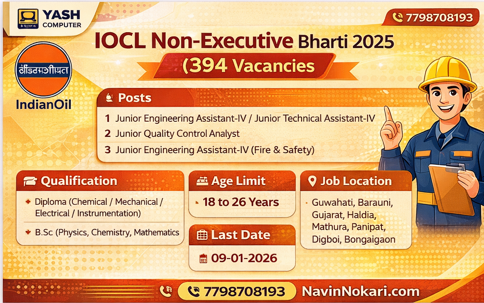 IOCL Non-Executive Bharti 2025 (394 Posts) | आयओसीएल नॉन-एक्झिक्युटिव्ह भरती 2025