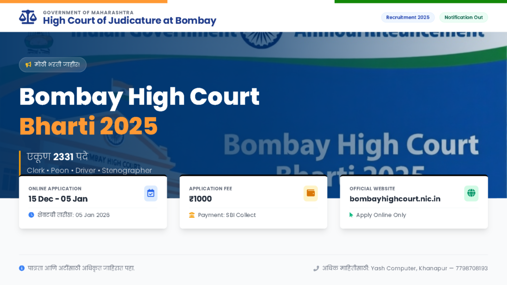 RITES Senior Technical Assistant (Mechanical) Bharti 2025 (150 Posts) — RITES Ltd. द्वारे सीनियर टेक्निकल असिस्टंट (मेकेनिकल) पदांसाठी एकूण 150 जागा. ऑनलाईन अर्ज 09.12.2025 पासून 30.12.2025 पर्यंत. शैक्षणिक पात्रता, अनुभव, निवडप्रक्रिया व आवश्यक कागदपत्रे खालील टेबलमध्ये दिली आहेत. क्र. पदाचे नाव संख्या 1 सीनियर टेक्निकल असिस्टंट (मेकॅनिकल) – नॉर्थ रीजन 50 2 सीनियर टेक्निकल असिस्टंट […]