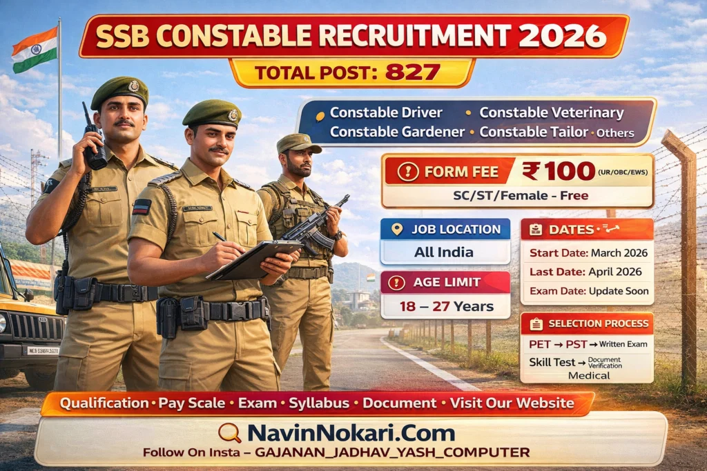 SSB Constable Bharti 2026 (827 Posts) | एसएसबी कॉन्स्टेबल भरती 2026