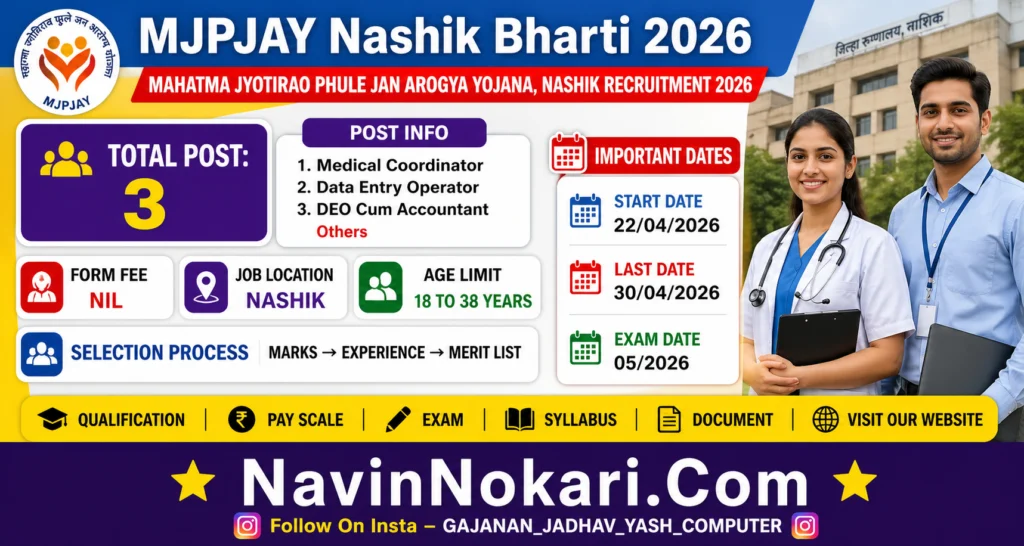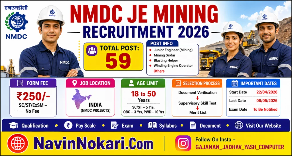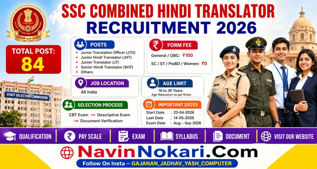 पंजाब नॅशनल बँक (PNB) Punjab National Bank मध्ये स्पेशालिस्ट ऑफिसर (SO) – सिव्हिल, इलेक्ट्रिकल आणि मेकॅनिकल इंजिनिअर पदांच्या 30 जागांसाठी PNB SO Bharti 2026 जाहीर झाली आहे. पात्र आणि इच्छुक उमेदवार 05 मे 2026 पर्यंत ऑनलाईन अर्ज करू शकतात. नोकरीचे ठिकाण संपूर्ण भारत असेल. सविस्तर माहिती, शैक्षणिक पात्रता आणि वयाची अट जाणून घेण्यासाठी संपूर्ण जाहिरात […]