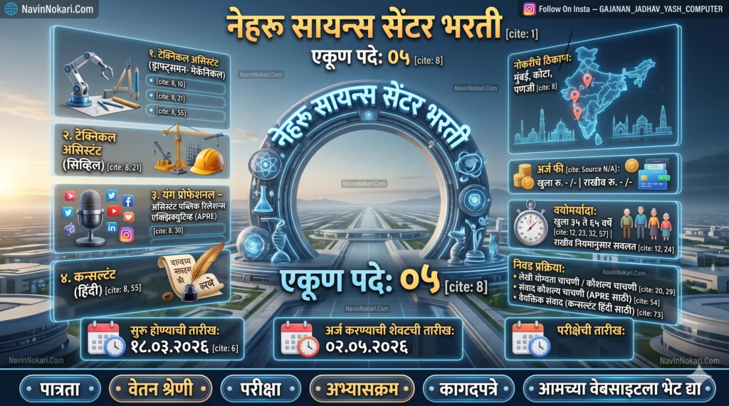 Ordnance Factory Chanda Bharti 2026 अंतर्गत ४०० ‘टेन्युअर बेस्ड डेंजर बिल्डिंग वर्कर’ (DBW) पदांसाठी ऑफलाइन अर्ज मागविण्यात येत आहेत. या भरतीसाठी पात्र उमेदवारांना अर्ज करण्याची शेवटची तारीख एम्प्लॉयमेंट न्यूजमध्ये जाहिरात प्रसिद्ध झाल्यापासून २१ दिवस आहे. सविस्तर माहिती आणि फॉर्मसाठी ऑर्डनन्स फॅक्टरी चांदा भरती २0२६ नक्की वाचा आणि आजच अर्ज पाठवा. क्र. पदाचे नाव संख्या 1 […]