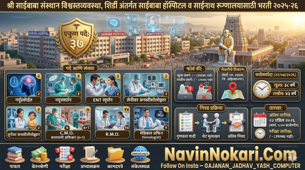 Shirdi Saibaba Sansthan Bharti 2026 (37 Posts) | शिर्डी साईबाबा संस्थान भरती 2026