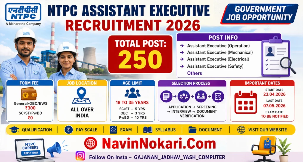 NTPC Assistant Executive Bharti 2026 (250 Posts) | एनटीपीसी असिस्टंट एक्झिक्युटिव्ह भरती 2026