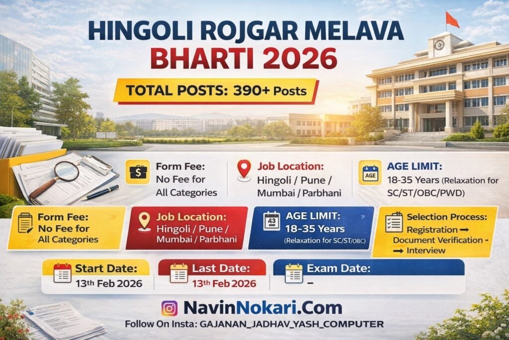 Hingoli Rojgar Melava Bharti 2026 (390+ Posts) | हिंगोली रोजगार मेळावा भरती 2026