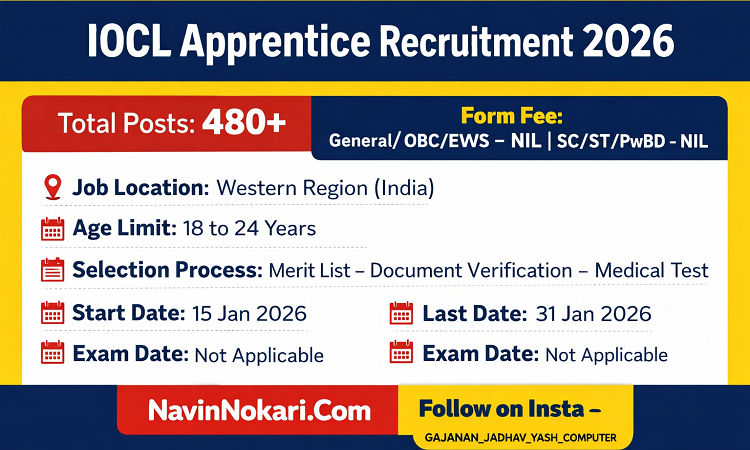 IOCL Apprentice Bharti 2026 (480+ Posts) | इंडियन ऑईल कॉर्पोरेशन लिमिटेड अप्रेंटिस भरती 2026