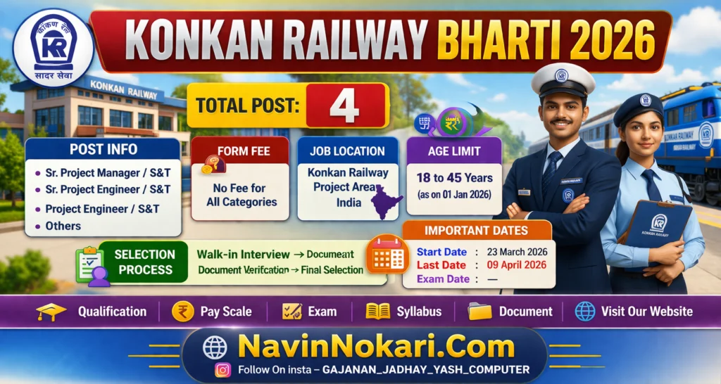 Konkan Railway Bharti 2026 (4 Posts) कोकण रेल्वे भरती 2026
