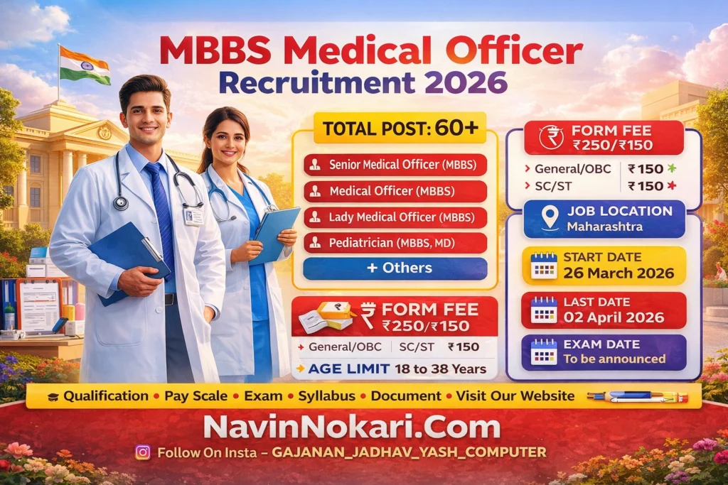 MBBS Medical Officer Bharti 2026 (– Posts) | वैद्यकीय अधिकारी भरती 2026