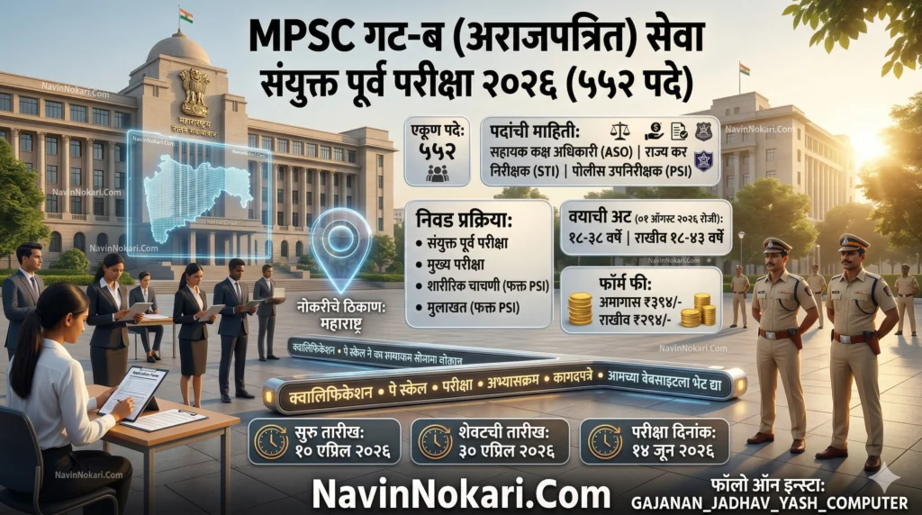 MPSC Group B bharti 2026 (552 Posts) | MPSC गट-ब (अराजपत्रित) पूर्व परीक्षा भरती 2026