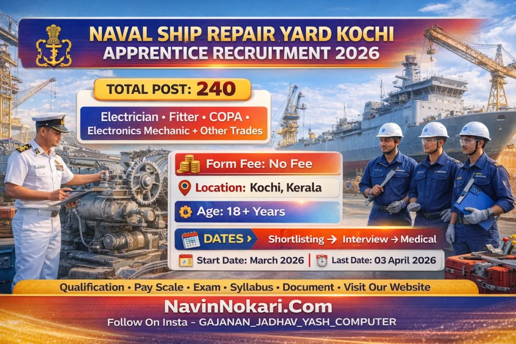 Naval Ship Repair Yard Kochi Bharti 2026 (240 Posts) | नेव्हल शिप रिपेअर यार्ड कोची भरती 2026