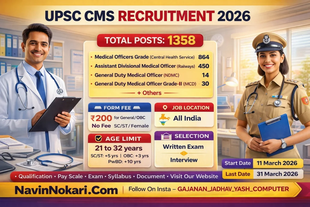 UPSC CMS Bharti 2026 (1358 Posts) | UPSC संयुक्त वैद्यकीय सेवा भरती 2026